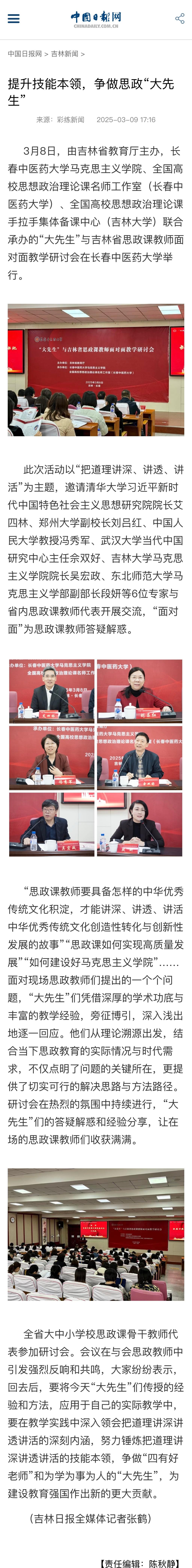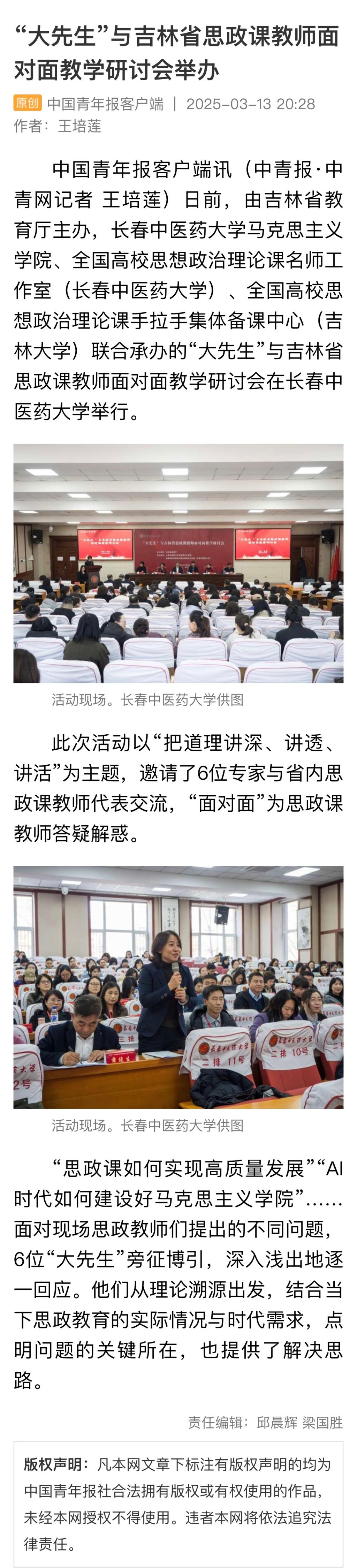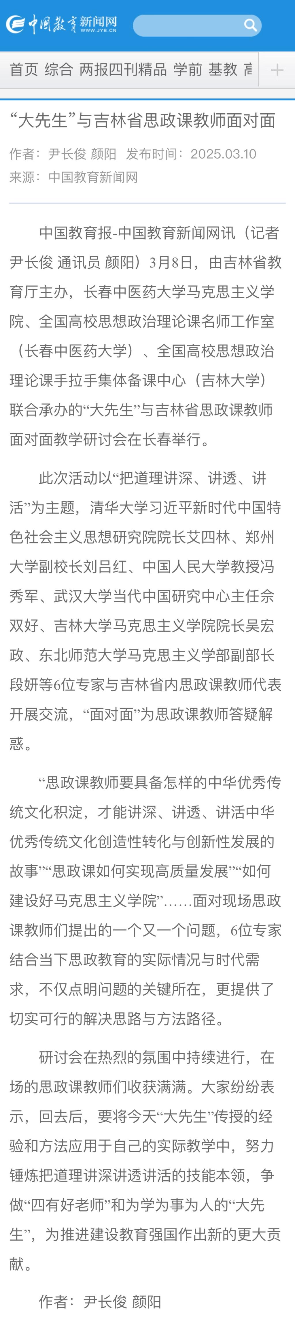 全国多家媒体报道pp电子活动全国多家媒体报道学院组织的“‘大先生’与吉林省思政课教师面对面教学研讨会”活动