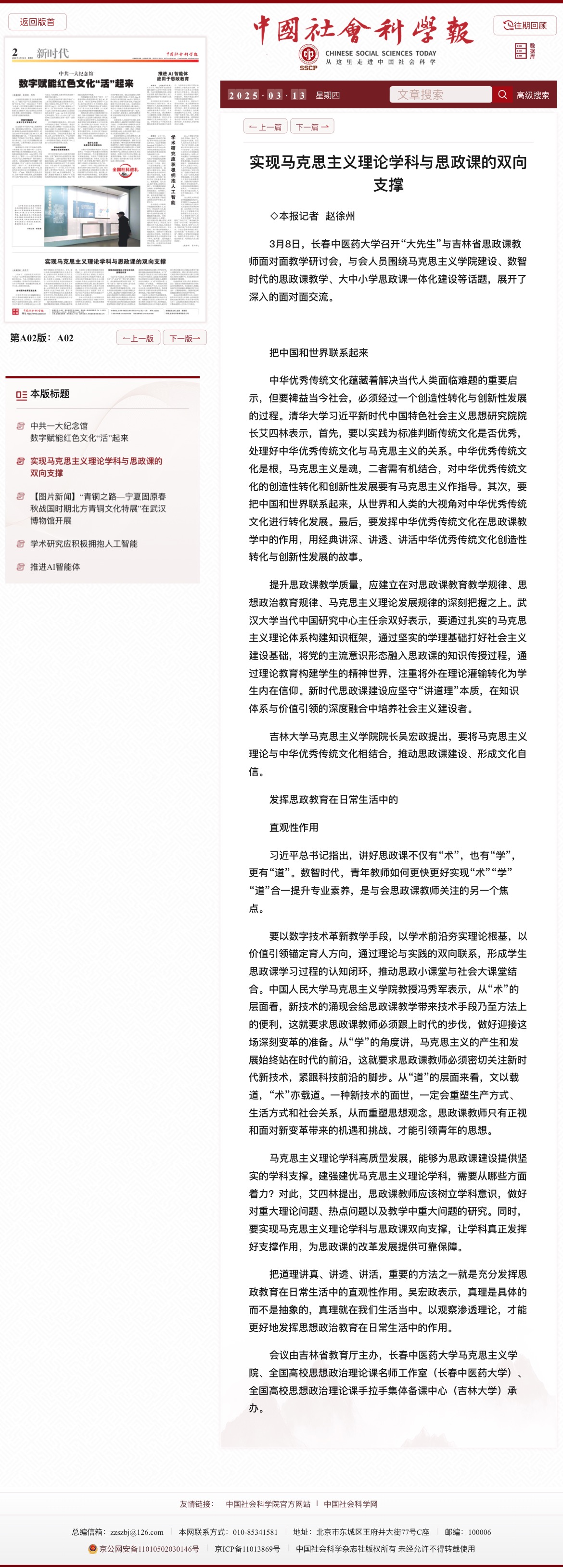近期,人民网、中国青年报、中国日报网、中国社会科学报等重要媒体报道学院组织的“‘大先生’与吉林省思政课教师面对面教学研讨会”活动。